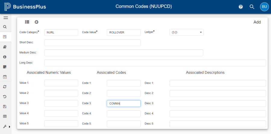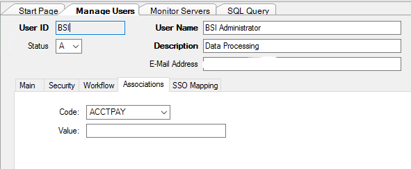 Common Codes for the User Associations have already been configured. These common codes are identified with a Code Category NUAS.