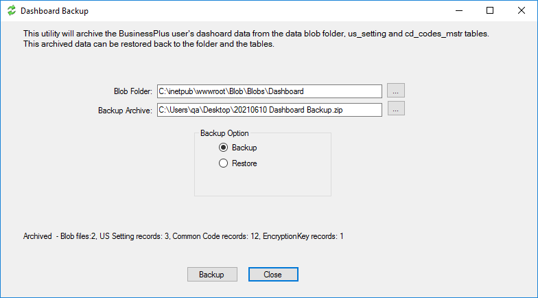 Launch the DashboardBackup.exe tool.