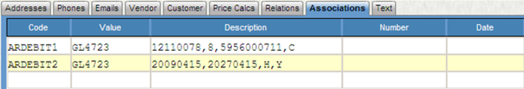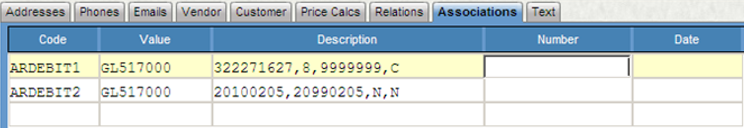- Association Code ARDEBIT1 contains information on the customer's direct deposit bank account.