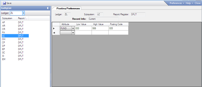 The retention transaction that is created by BusinessPlus is a negative debit and therefore the treatment in the GLUTSPSI needs to be a debit at posting time. When the contract retention is paid out then the transaction for the payment is manually initiated with an invoice made payable to the vendor and the liability account will be debited correctly.