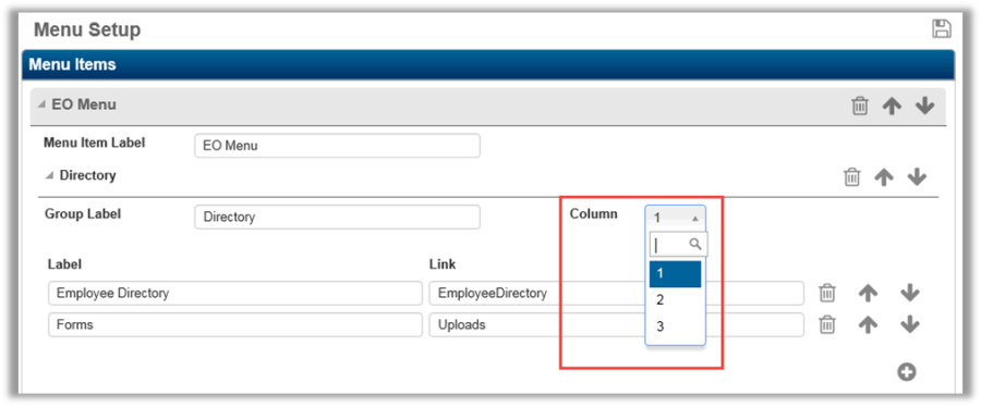 Group labels can be organized in up to three columns. Select the desired column number from the drop-down list.