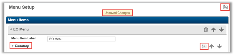 The button will flip to the side, the label name is crossed out, and the user is informed of unsaved changes to the page. To undo the changes, click the Delete (trash can) button again. To save the changes, select the Save button.