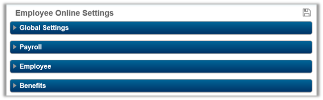 The following settings can be updated on the Employee Online Settings page: