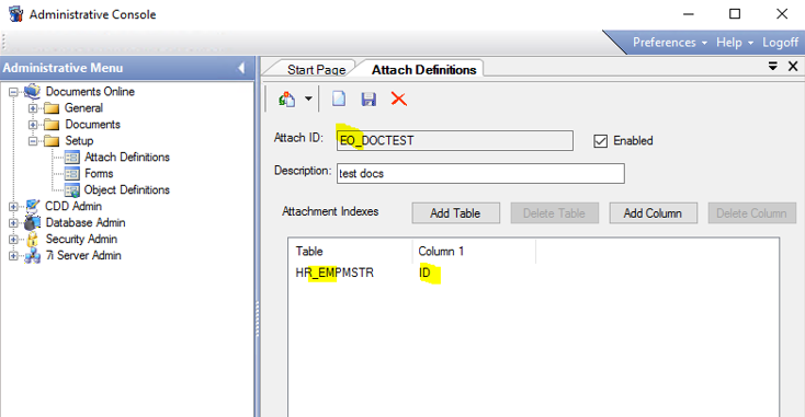 Document Types appearing in the drop-down list pulled from attachment definitions set up in Documents Online are all types attached to HR_EMPMSTR by ID.
