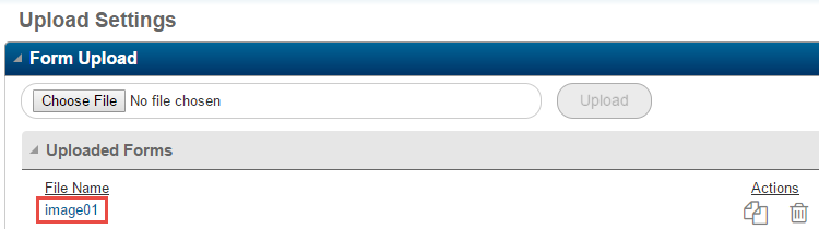 When the file has been successfully uploaded, the file name will appear in the File Name list on the Uploaded Forms card.