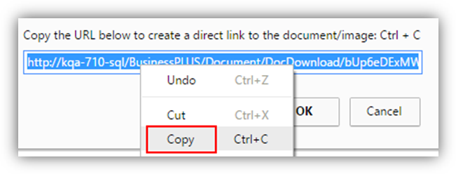 The Copy window will give the user a direct link of the form or image in Documents Online.