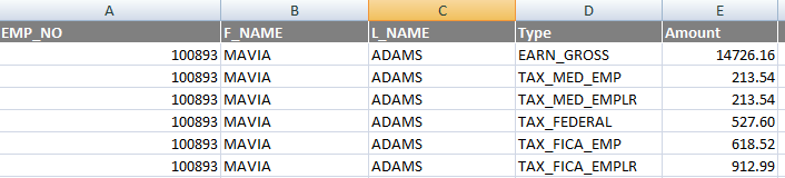 Unload payroll history into a spreadsheet. You need the following information: