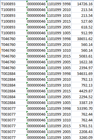 Add the NUMCD and PERIOD columns to the spreadsheet. Format ID, NUMCD, PERIOD columns as TEXT. Format AMOUNT as number with 2 decimals.