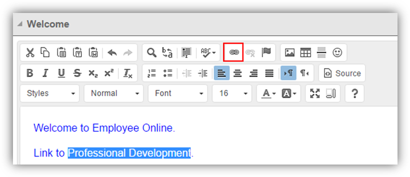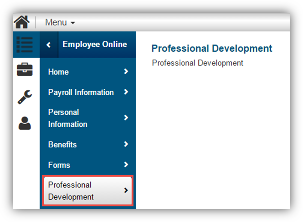 For clients that also use other edge application modules, for example the Professional Development module, they can link to the module from within Employee Online by one of two methods: