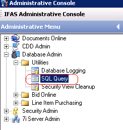 - From the Administrative Menu/ Database Admin/Utilities/ SQL Query.
