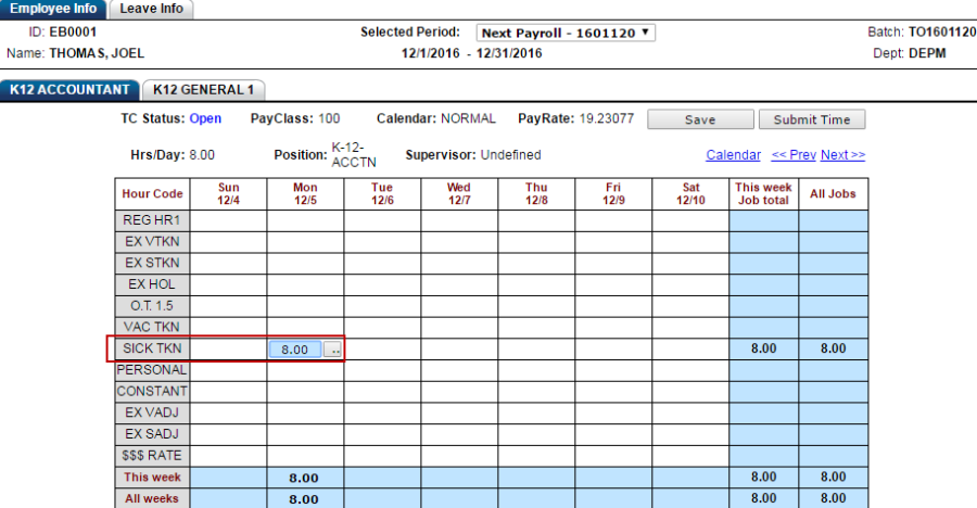 - Employee/Timekeeper saves and submits time to Supervisor.