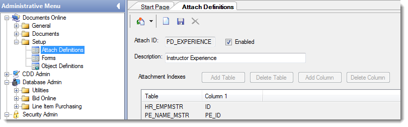 Enter an Attach ID starting with PD_. For example, PD_EXPERIENCE with a Description of Instructor Experience Information.