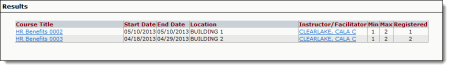 After selecting search, a "Results" page will display.
