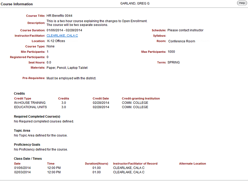 By selecting on the course title, a more detailed description of the course will be shown.