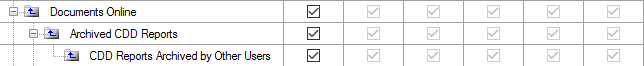 The ability to archive CDD reports is controlled by the "Archived CDD Reports" node below the "Documents Online" node in the Role security hierarchy. To archive a CDD report, the user must have "Write" access to that security object.