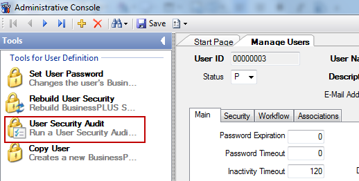 To help ensure that many different aspects of the system can share the same security information easily, a significant amount of each user's security is saved in the US_ROLE_OUTPUT table. This way, BusinessPlus, CDD, and the software running on the application server can all share the same access information. However, it is possible for the information in this output table to become stale. One way to check for this is the User Security Audit tool on NU Manage Users.