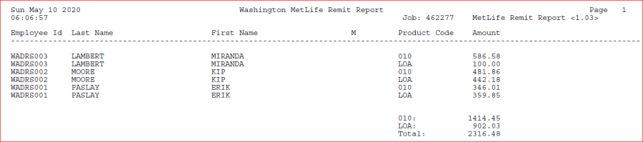 The first file that is created by PYRESRWAMR is a text file that is used to remit to MetLife to show what transactions happened during payroll.