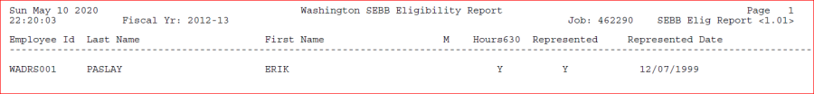 The PYRESRWASE process generates several files and a report on employees that are eligible for benefits. The report is informational for the user to verify which employees will be reported to SEBB as eligible for benefits. The file with eligible employees is sent to SEBB. A recon file is also produced so the number of hours an employee is expected to work can be seen for all employees as well as the hours 630 flag which can be overridden by miscellaneous code.
