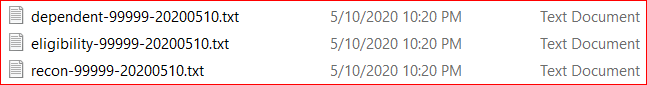 Three files are generated in the C:/WA directory on the Workflow server when the process is run. The file names are either "dependent," "eligibility" or "recon" concatenated with the LEA code and the date the process was run.
